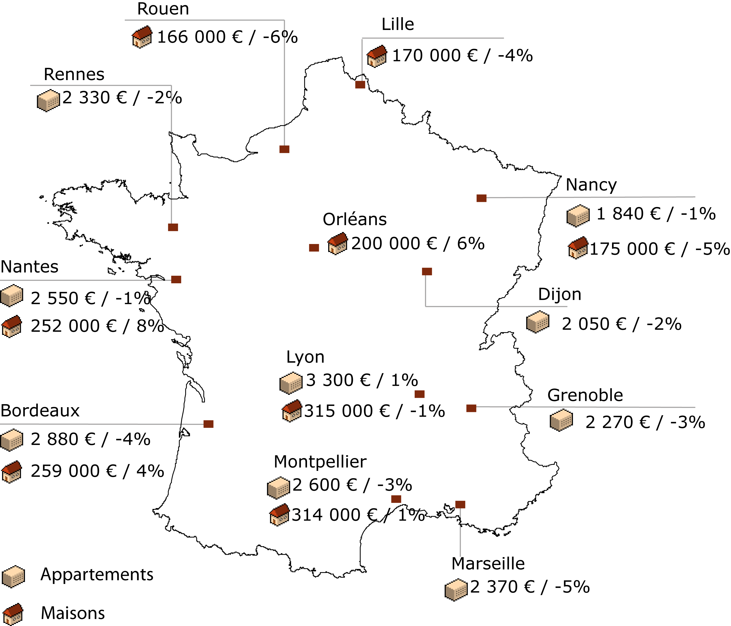 Statistiques notariales à l’appui, voici  l’évolution des prix des logements anciens dans les métropoles régionales.