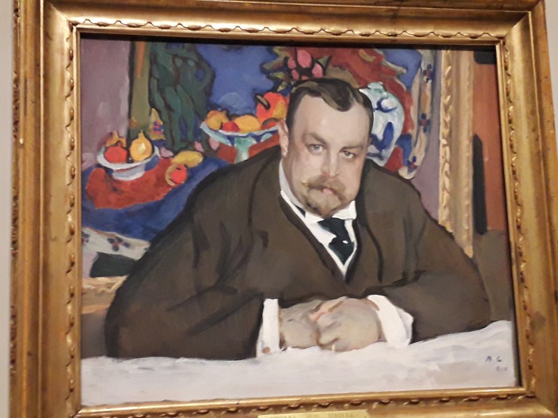 Ou encore dans la salle consacrée à Matisse. Sa nature morte « Fruits et bronze », Issy-les-Moulineaux, 1910 prêtée par le Musée d’Etat des beaux-arts Pouchkine de Moscou « figure » en arrière fond du portrait d’Ivan Morozov exécuté par Valentin Sérov à Moscou en 1910. Le tableau ci-dessous a été prêté par la Galerie nationale Trétiakov à Moscou.