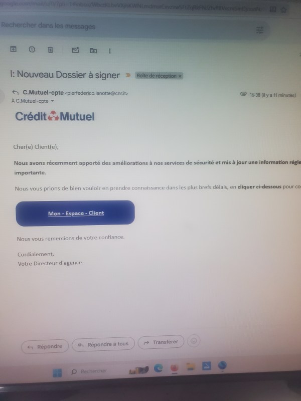 Bizarre, bizarre comme dirait le célèbre acteur Louis Jouvet. N’étant pas cliente et n’ayant jamais été cliente au Crédit Mutuel, j’ai reçu ce mail le 19 février à 16.38 :
